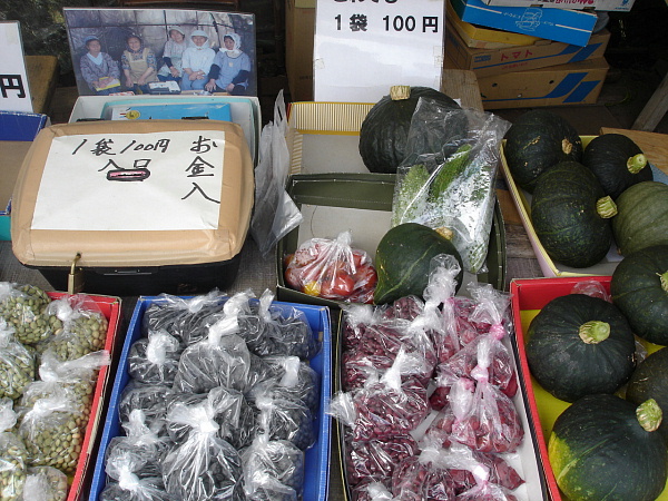 道の途中にある野菜の直売所。
